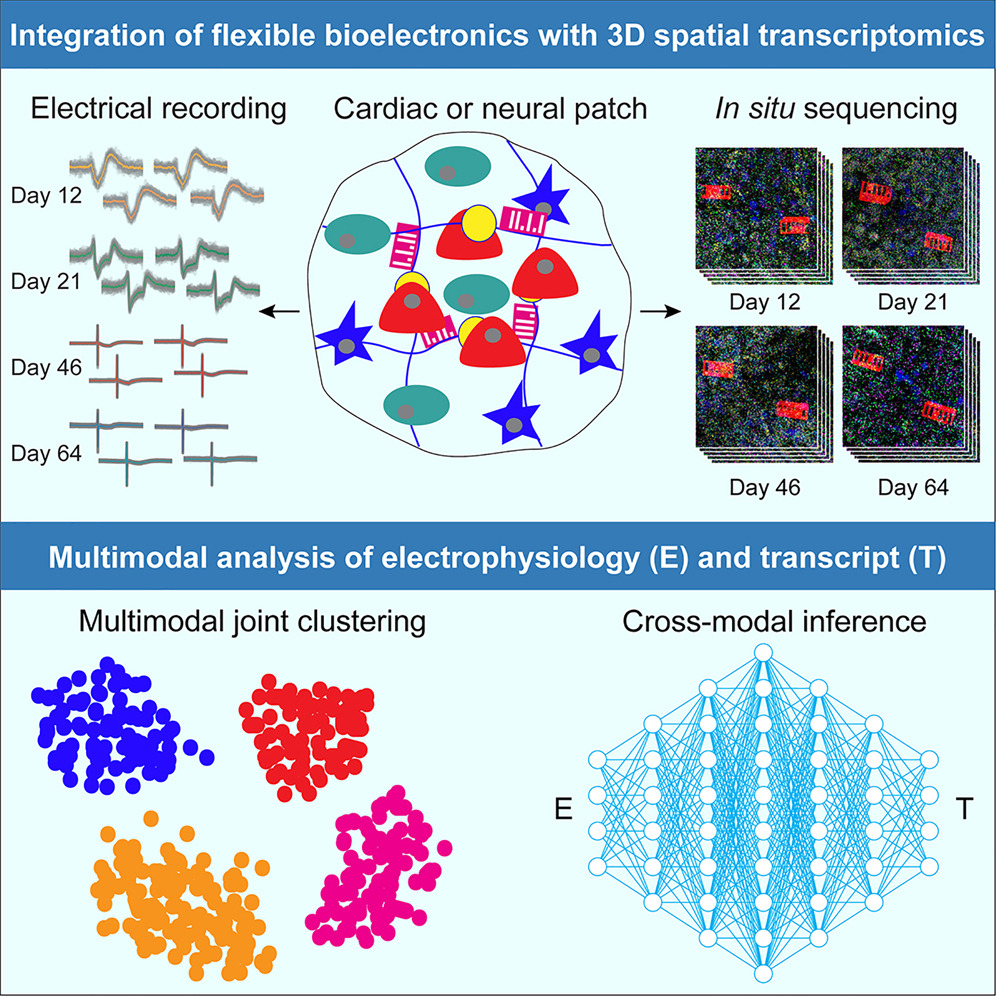 - 使用基于机器学习的交叉模态分析,原位电序列识别了整个心肌细胞发育过程中基因与电生理学的关系,并根据长期稳定的电测量准确重建了基因表达谱的演变。